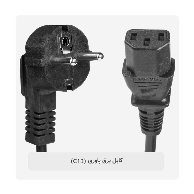 طراحی استاندارد: یک سر کابل دوشاخه استاندارد و سر دیگر کانکتور C13.